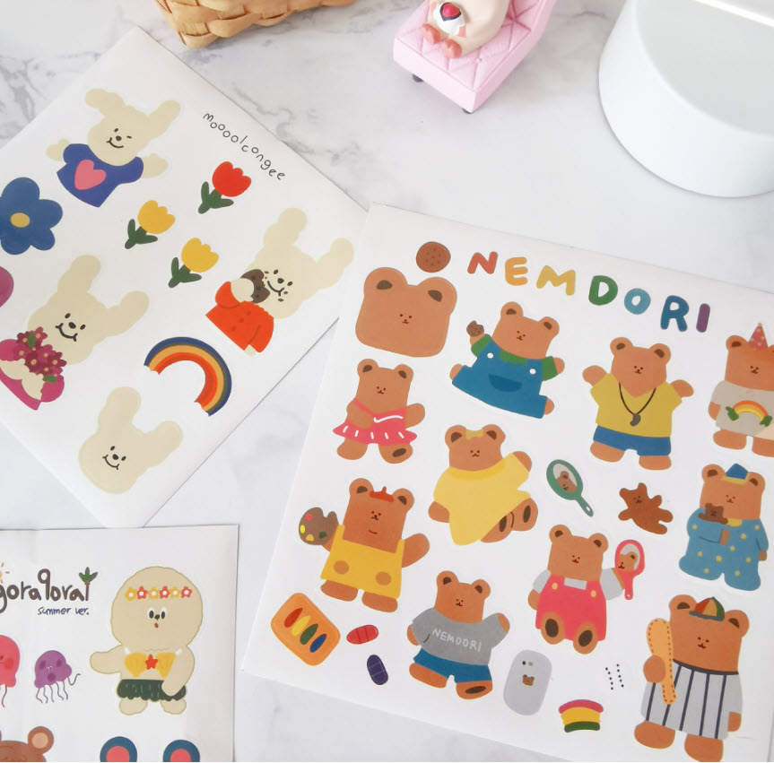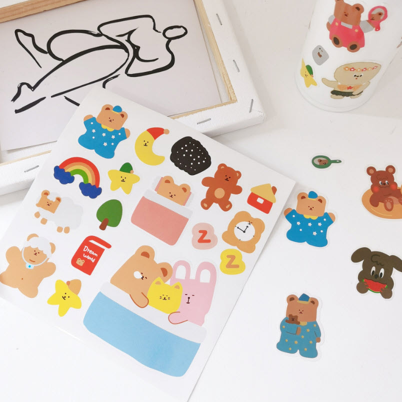 Ohmynote สติกเกอร์ลายหมีน่ารัก สำหรับตกแต่งแพลนเนอร์ ไดอารี่ สมุดโน๊ต